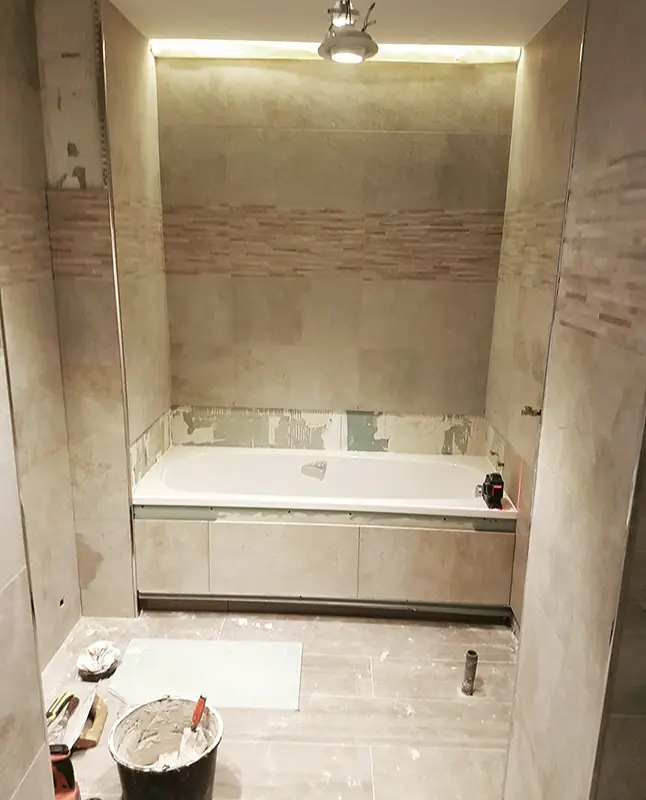 En la reforma de este baño, se decidió conservar la relajante bañera, dándole el protagonismo que merece en el espacio. Se eligieron cuidadosamente los materiales para asegurar que cada elemento fuese armonioso y elegante, creando un ambiente equilibrado y sofisticado. El resultado es un baño donde la bañera se convierte en el centro de atención, aportando un toque de lujo y tranquilidad al diseño.